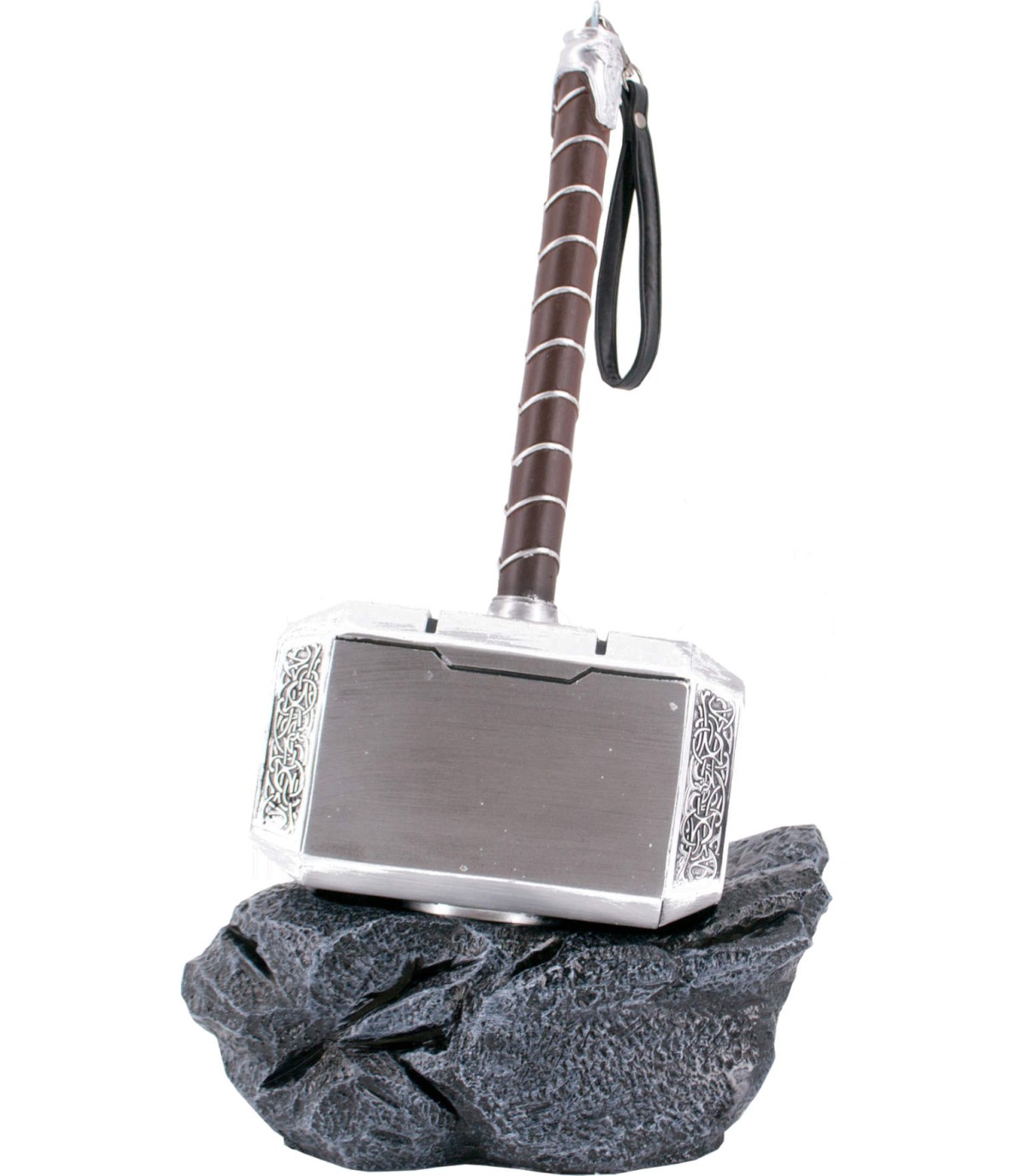 Impresionante replica de resina del martillo de Thor, Mjölnir, en resina con un soporte que simula haber roto el suelo con su poder demoledor, también en resina. No garantizamos que seáis dignos de poder levantarlo ;)